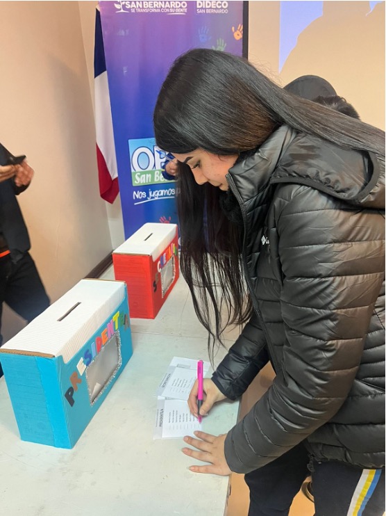En la cual, Julio Fritz de 3ro medio TP quedó como vicepresidente y Tomás Torres de 3ro medio TP como secretario serán nuestros representantes juveniles para la comuna de San Bernardo ante consultas y proyectos para los consejeros comunales.